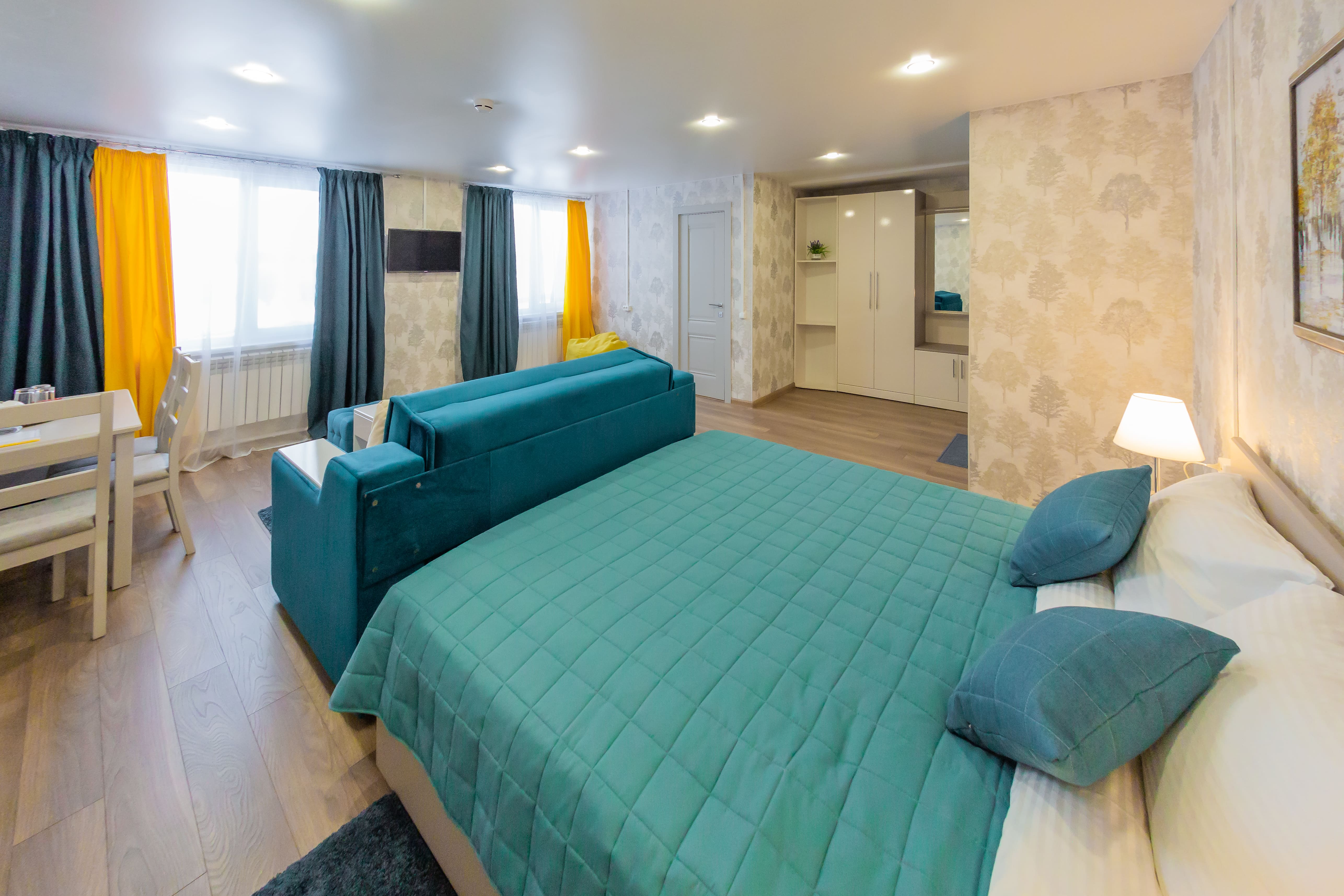 Стоимость в выходные: 5800 Мы рады предложить Вам просторный номер 30,8 кв.м. для комфортабельного отдыха. Этот номер идеально подойдет для семейного путешествия, а также для путешествия в компании друзей. Безупречность деталей и ощущение домашнего комфорта сделают ваш отдых незабываемым. Гостиничный номер рассчитан на 3 места: 1 двуспальная кровать, 1 раскладной диван-кровать. В номер можно разместить одного ребенка от 0 до 6 лет включительно (без предоставления места). Дети от 7 до 17 лет включительно размещаются на основных местах. Все номера гостиницы являются некурящими. Парковка под видеонаблюдением входит в стоимость номера. Проживание с животными строго запрещено. УДОБСТВА В НОМЕРЕ: - 1 двуспальная кровать и 1 раскладной диван-кровать; - 1 кресло-мешок; - 2 пуфа; - шкаф для одежды; - прикроватные тумбы; - светильники; - письменный стол; - журнальный стол; - стулья; - телевизор c плоским экраном; - вентилятор; - зеркало; - отопление; - москитная сетка; - гладильная доска и утюг по запросу; - стаканы, чашки, блюдца, чайные ложки; - чайник; - холодильник; - WI-FI ВАННАЯ КОМНАТА: - шкафчик с зеркалом (с подсветкой); - стаканчик для зубных щеток; - мыльница; - душевая кабина; - раковина; - туалет; - фен; - полотенца; - халаты; - тапочки; - туалетные принадлежности.